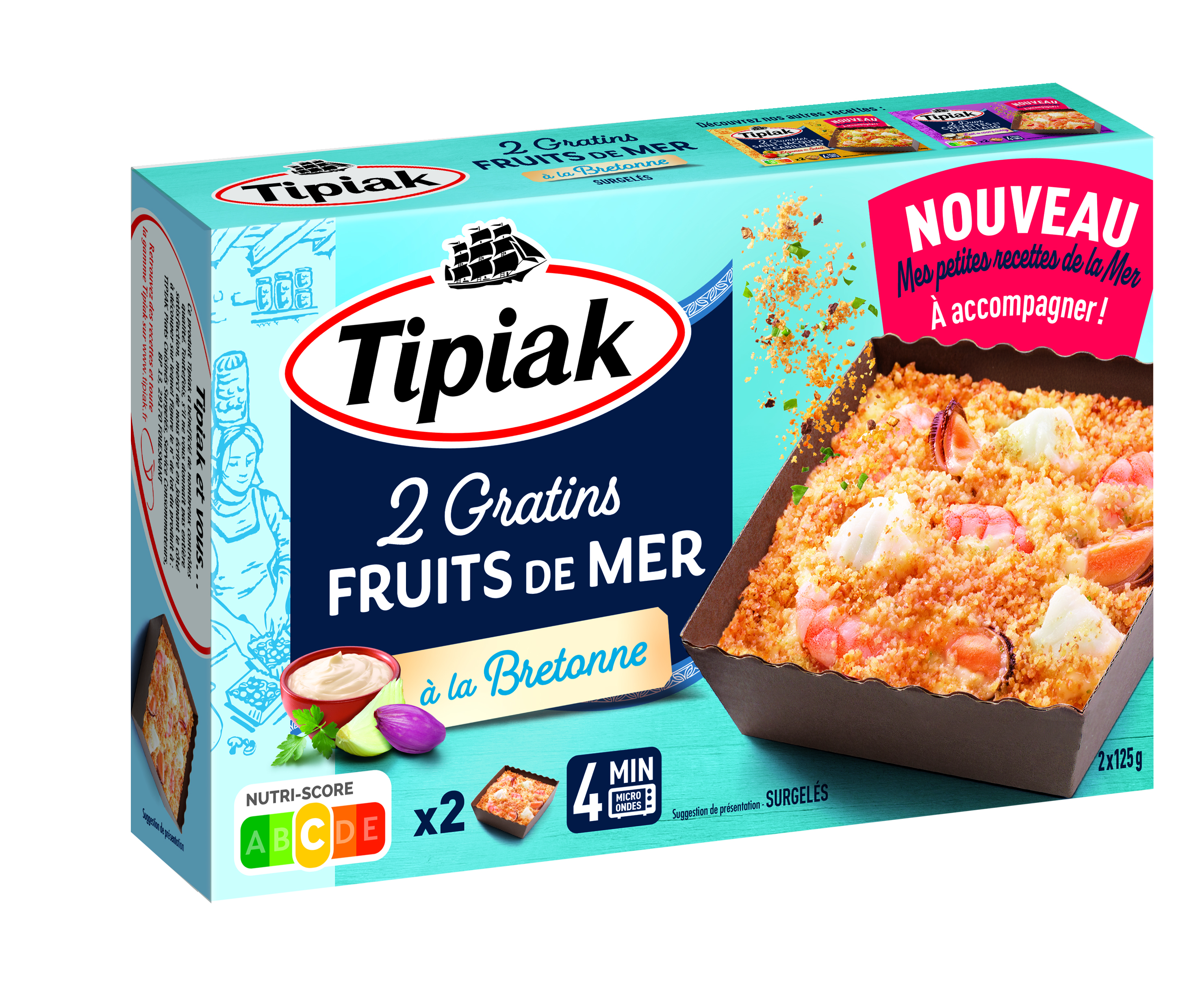 Crevettes, colin d’Alaska, oignons, crème fraîche, moules, échalote, vin blanc, chapelure